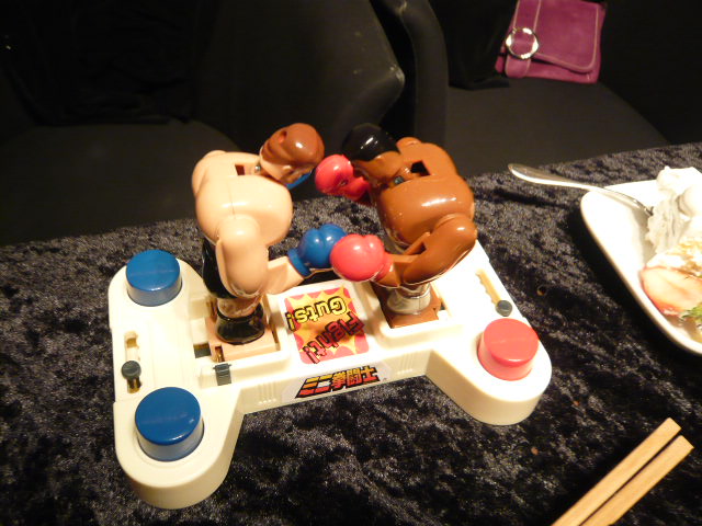 となりのテーブルのお兄ちゃんがビンゴ大会で当てた拳闘士を強奪して遊んだ。