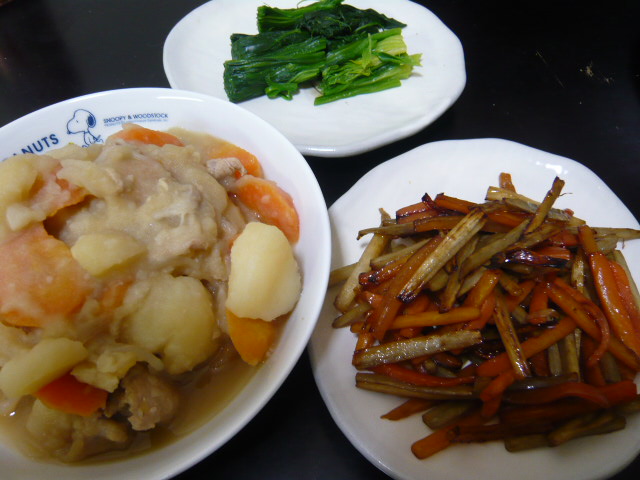 肉じゃが・きんぴらごぼう・ほうれん草のおひたし。