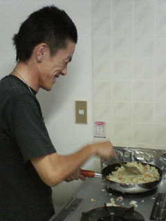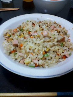 ハイッ! 満面の笑みで炒飯(イタメシ)を作っていま~~~す♪ ですよ。