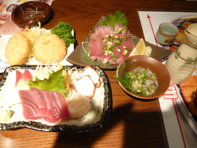 刺身・牛たたき・カニコロッケなんかもあって