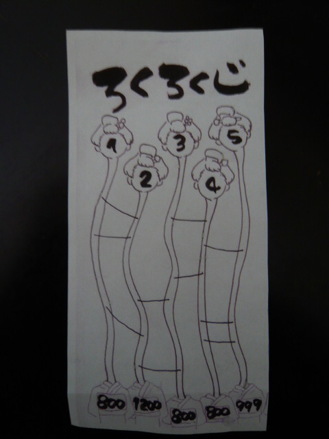 ろくろくびが5人 あみだくじのようにつながれています。